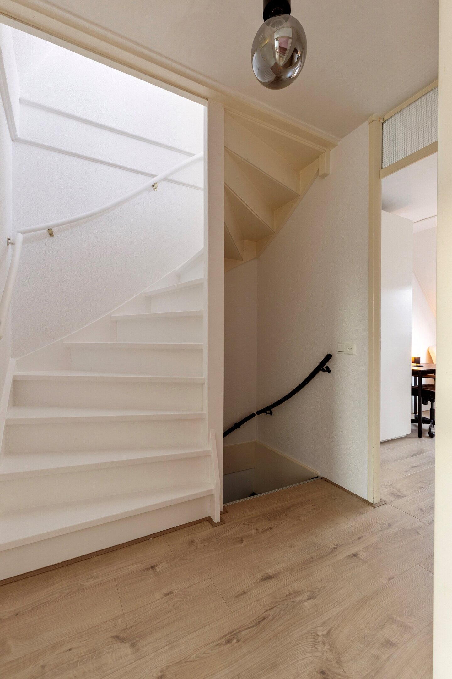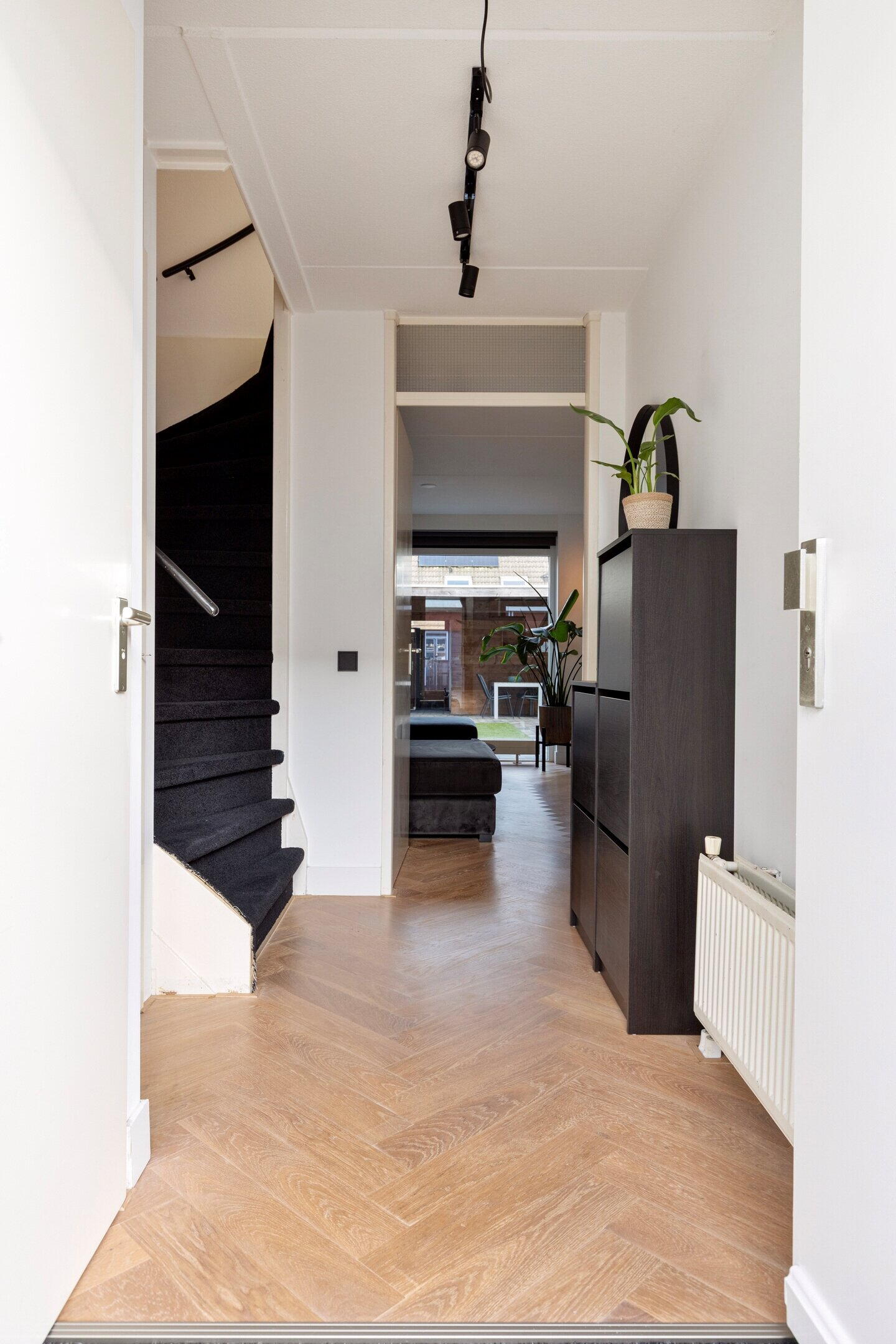 Bij binnenkomst ervaart u direct de prettige en uitnodigende sfeer. De hal is, net als de rest van de begane grond, voorzien van een verlijmde visgraat eikenhouten vloer die zorgt voor een strakke uitstraling met een warme en robuuste basis. Het toilet is uitgerust met vloerverwarming, waardoor u hier altijd comfort ervaart.