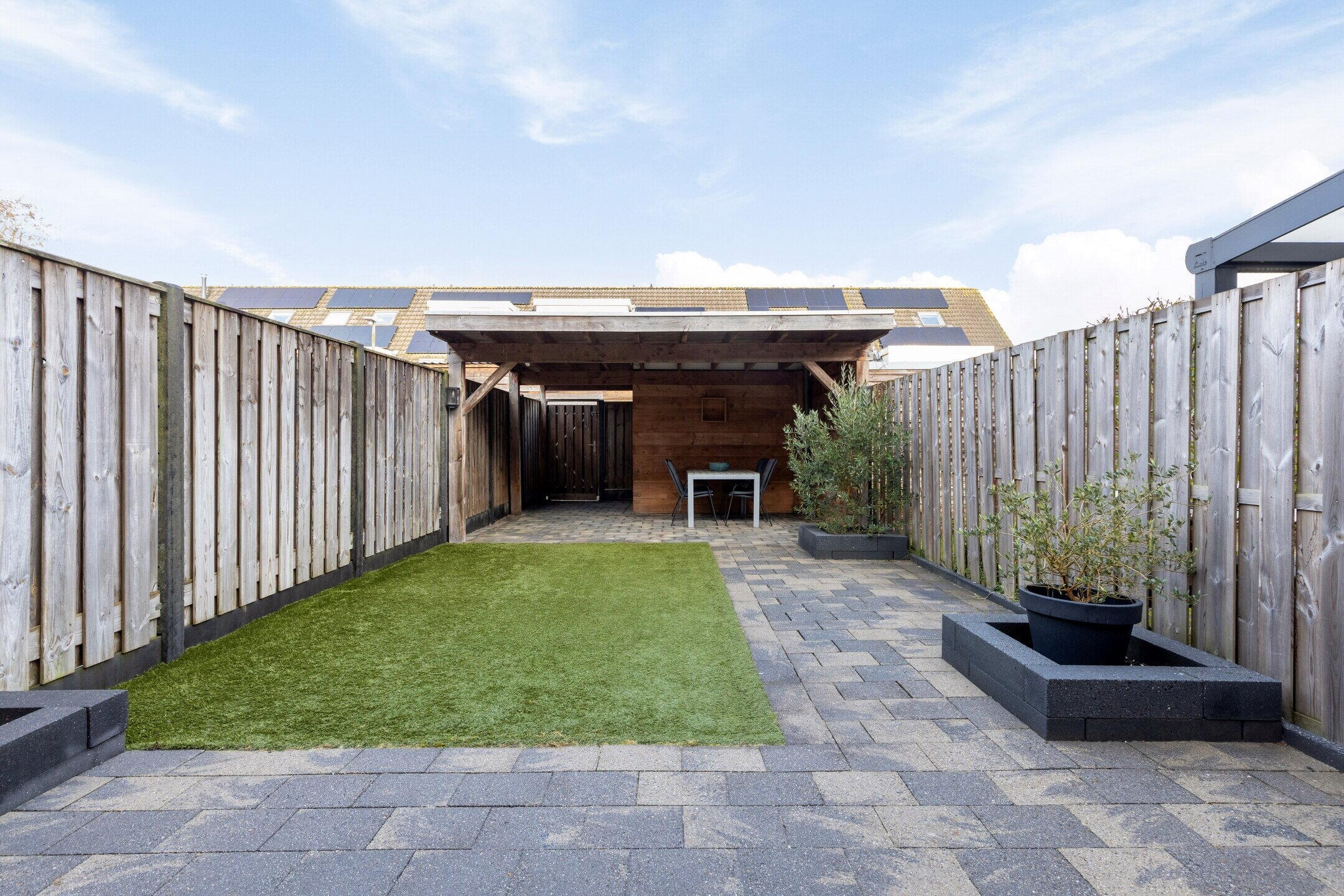- Ruime achtertuin met royale overkapping en praktische berging
